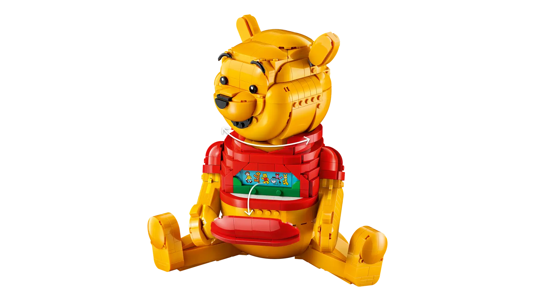- OPZIONI DI POSA CREATIVE: metti in posa Winnie the Pooh in mattoncini girando la testa, muovendo le orecchie, sollevando le braccia e ruotando la mano e rivela le sorprese nascoste all’interno del modello